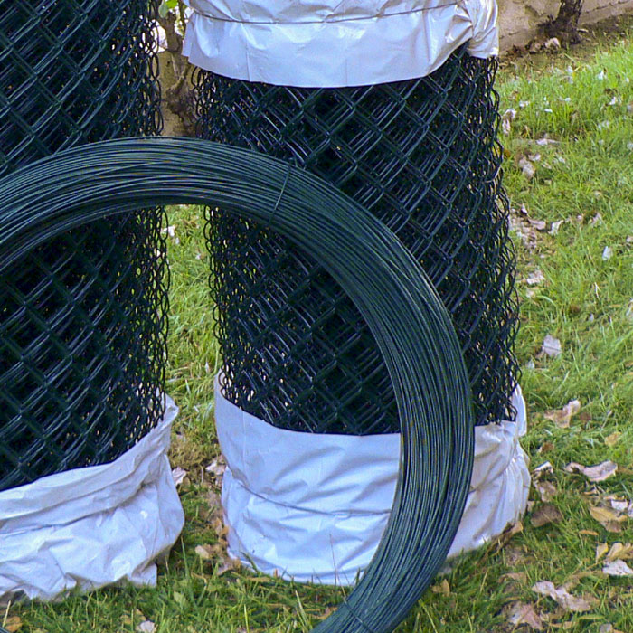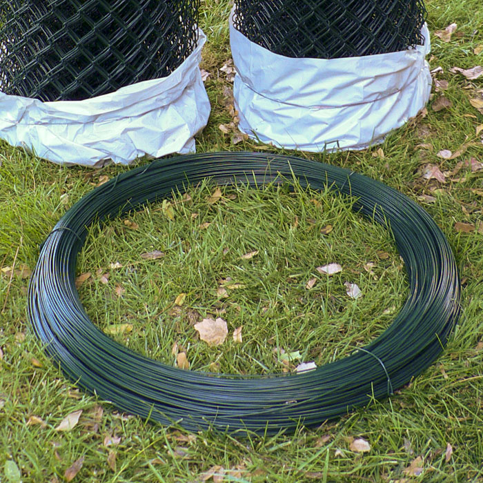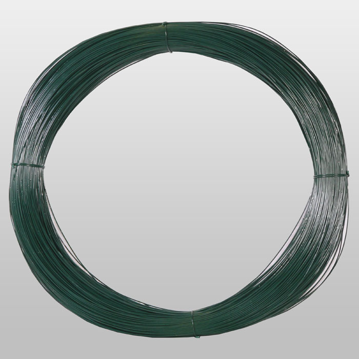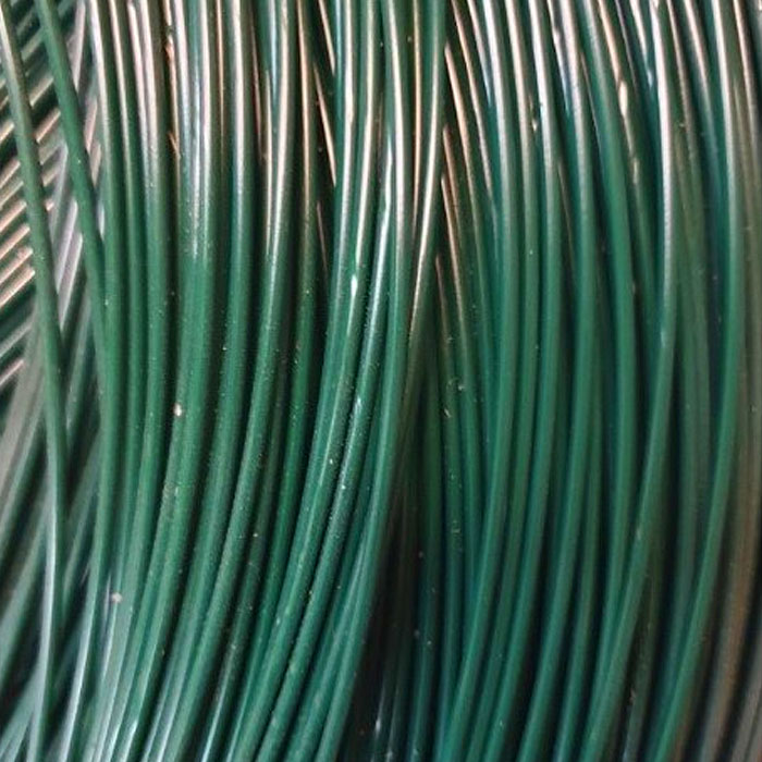 Alambre plastificado con una capa de PVC verde para mayor duración.