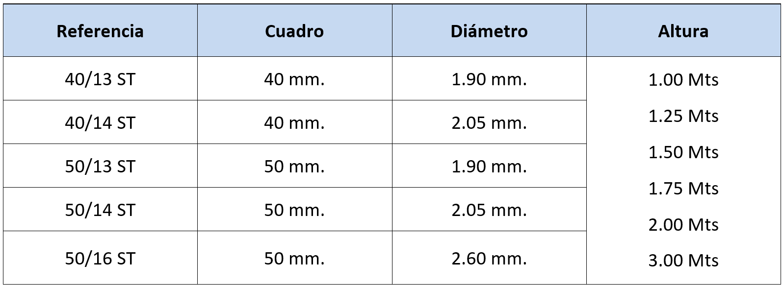 * Otras alturas disponibles bajo pedido