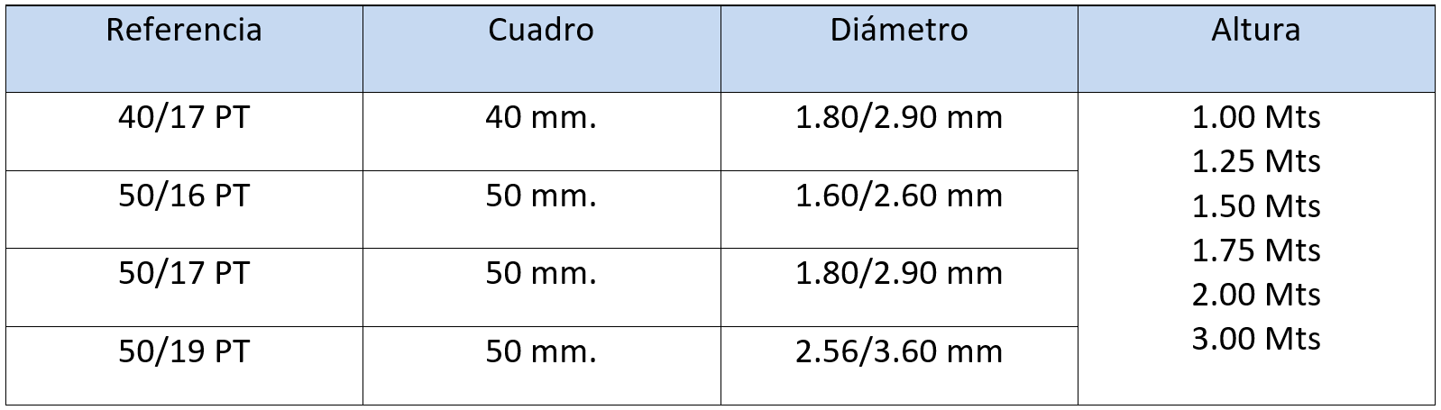 Este producto está fabricado con alambre de diferentes diámetros entrelazado formando rombos de distintas medidas. El alambre está enriquecido con una capa de PVC que alarga la vidad del enrejado en zonas con alto nivel de corrosión.