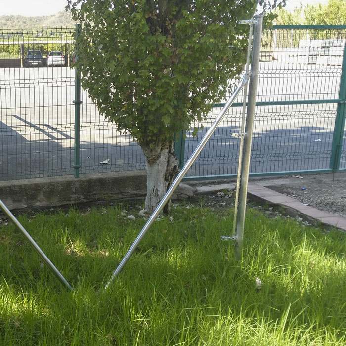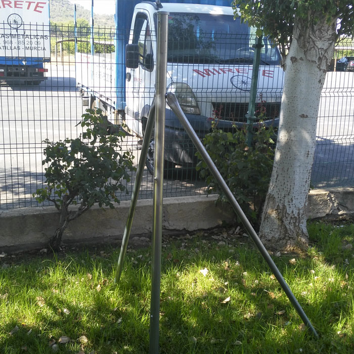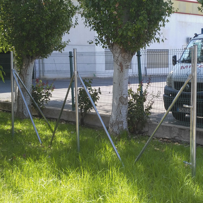 Este poste se coloca cada 40 o 50 m a lo largo del vallado para tensar la malla. Está formado por un tubo normal con dos tornapuntas de 35x1,2 mm formando ángulo de 120º reforzando así el tensado en ambos sentidos.